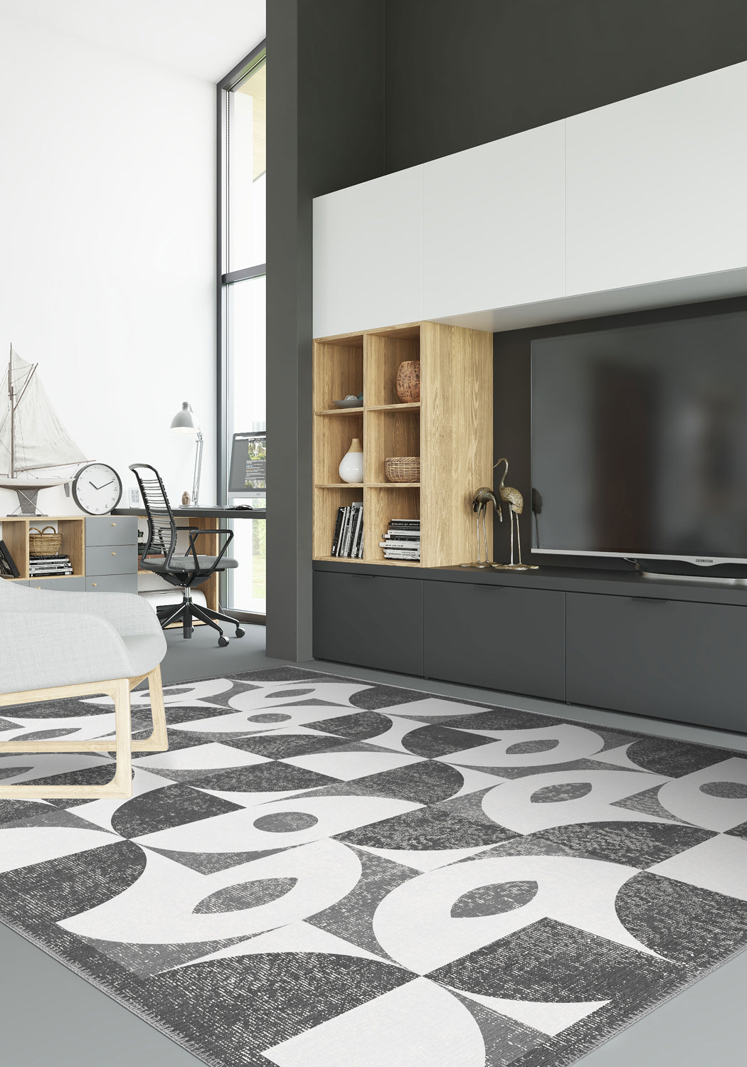 Rugette rugs feature a dust-free design and low pile, providing a sleek, easy-to-clean surface for a modern home.