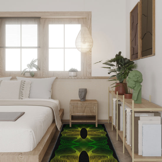 With its futuristic elegance and captivating optical flow, the Optio Black Green Futuristic Rug transforms any room into a bold, contemporary masterpiece. Whether you're looking to create a sleek, modern aesthetic or add a touch of avant-garde artistry, this rug delivers an unforgettable visual experience.