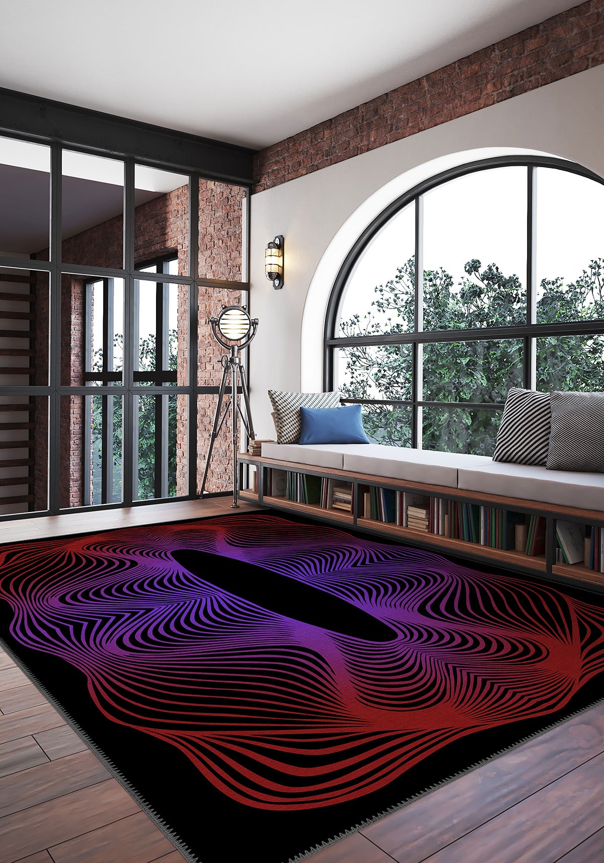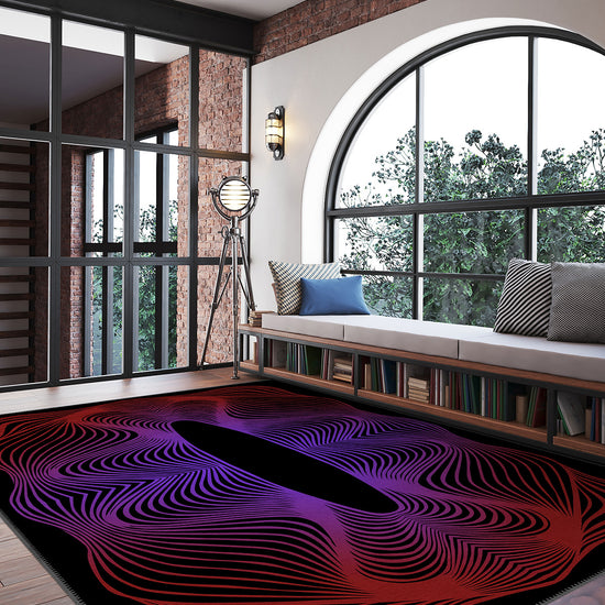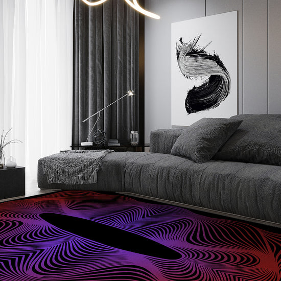 Immerse yourself in the hypnotic allure of the Optio Purple Op Art Rug. With a mesmerizing gradient of deep purples and rich reds set against a bold black backdrop, this rug embodies the perfect fusion of modern art and dynamic movement. Its fluid lines create a striking visual effect, making it a bold centrepiece for contemporary interiors.