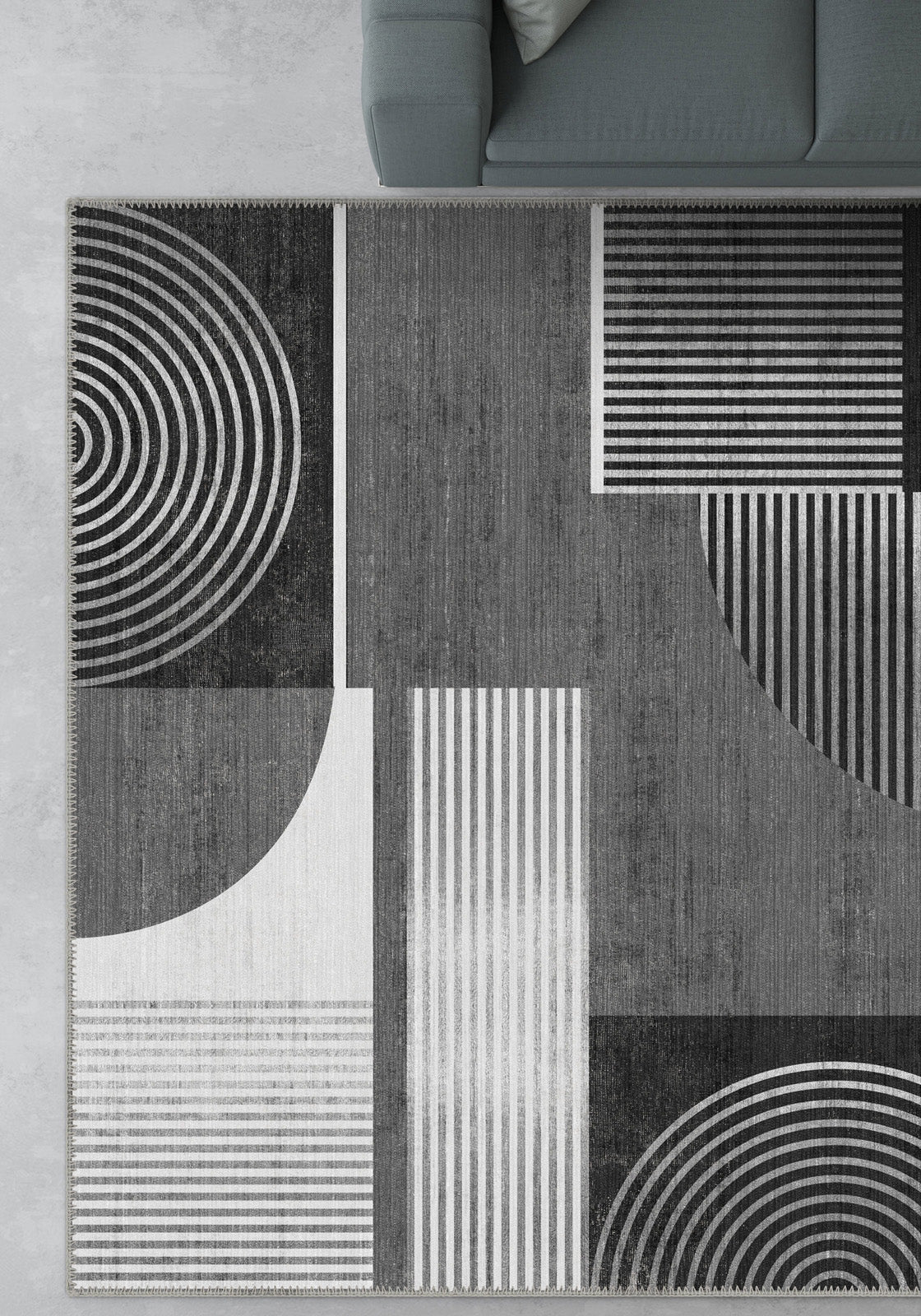 Peyton Geometric Black and White Rug – A Statement of Modern Elegance