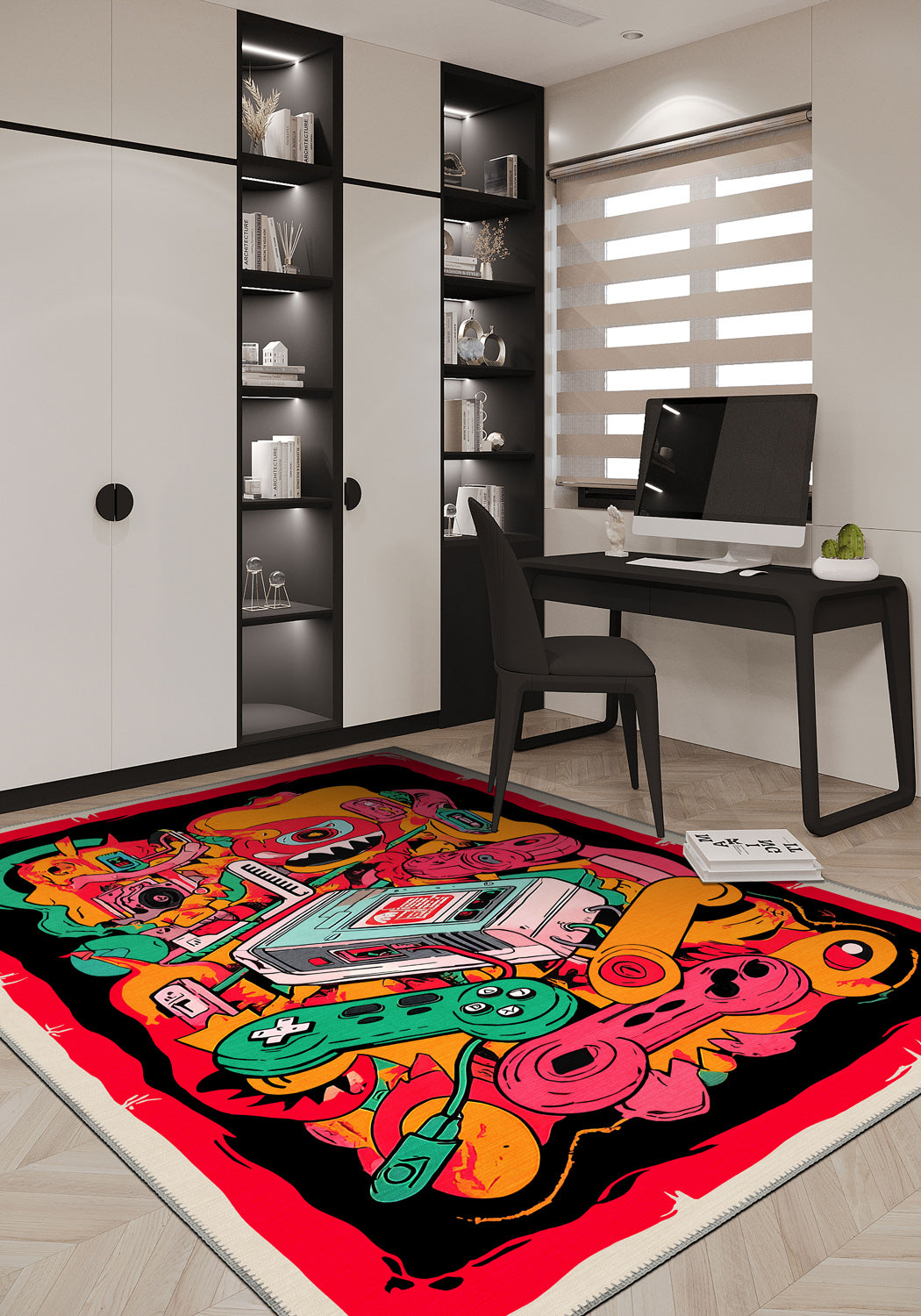 This isn’t just a rug. It’s a canvas of imagination and a tribute to every joystick-lover out there. Flatwoven for easy upkeep and surprisingly lightweight, it’s ready to bring fun into spaces that never take themselves too seriously.