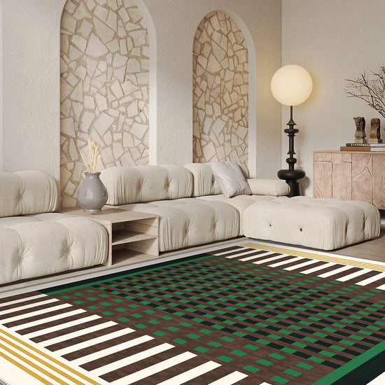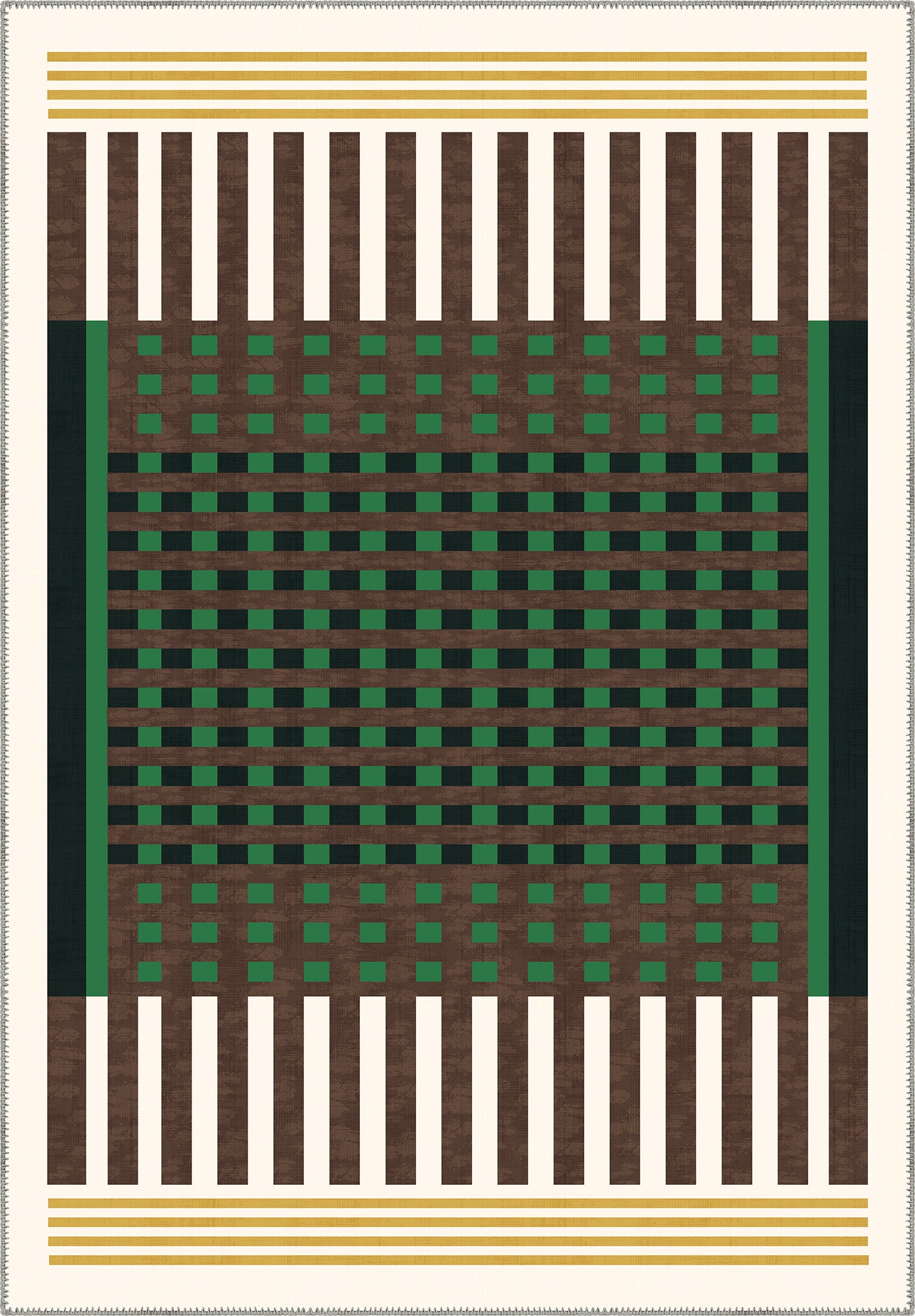 Quillon Green Plaid Rug – Bold Symmetry, Earthy Soul