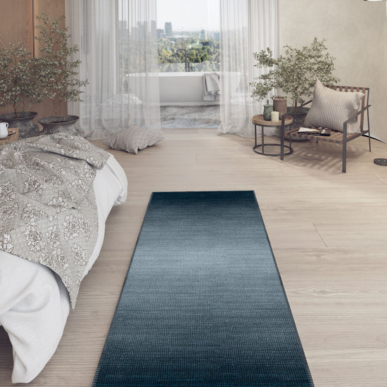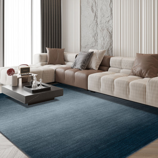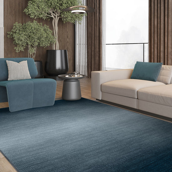 The Rilo Ombre Blue Rug brings a contemporary touch to your decor with its sophisticated blue ombre gradient. Perfect for minimalistic and modern interiors, this rug creates a calming ambiance while adding a striking visual element to your space.