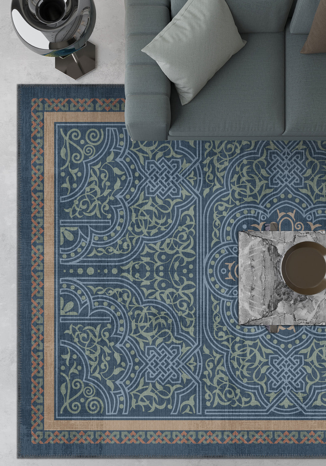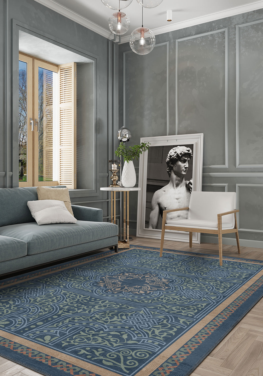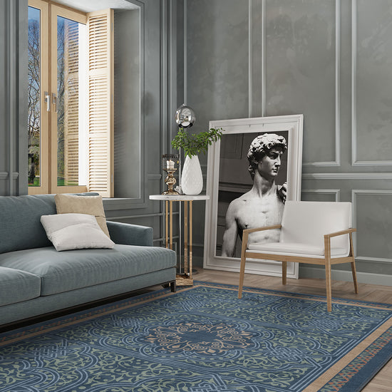 Ronan Blue Celtic Rug – Timeless Majesty in Ink and Ivy