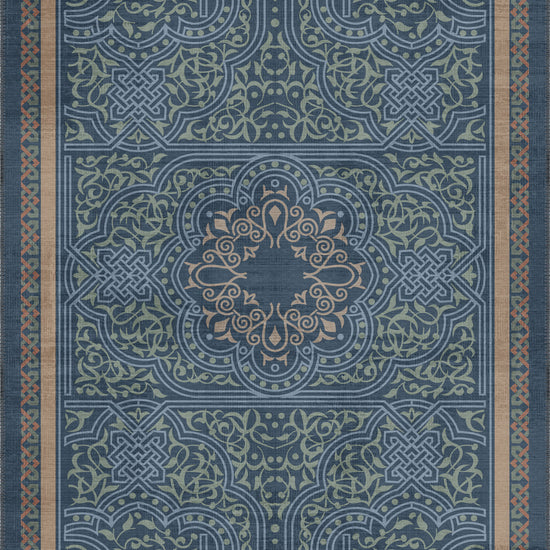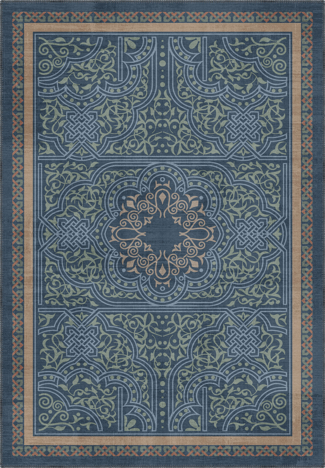 The Ronan Blue Celtic Rug is a tapestry of ancient echoes and refined colour. A deep indigo base cradles intricate knotwork, ivy scrolls, and a majestic central medallion that draws the eye like a spell. The leafy sage green motifs and warm clay-toned details weave together like a forgotten manuscript—each corner humming with mythical energy. It's a design that feels scholarly, spiritual, and deeply elegant.