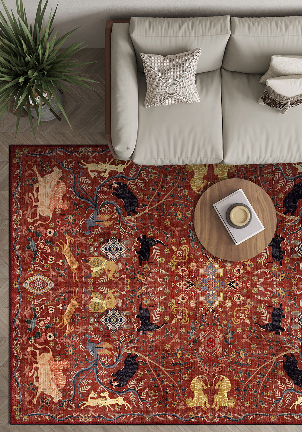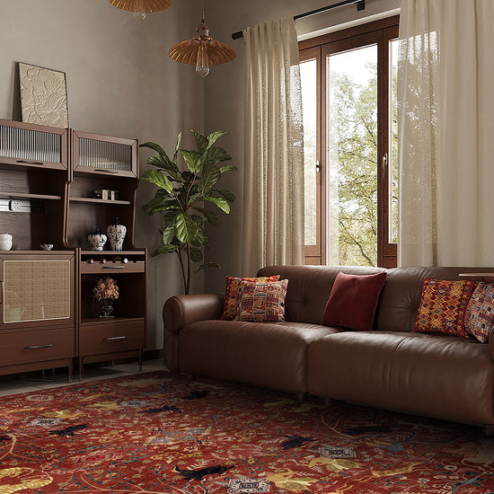 Beyond its artistry, the Rostam is crafted for real homes. As part of our washable rugs collection, it combines heritage aesthetics with modern practicality. The low-pile finish keeps it sleek underfoot and easy to place beneath furniture, while its durable structure makes it perfect for everyday life.
