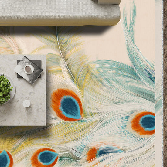 The Rydian Cream Peacock Rug brings the vibrant beauty of peacock feathers into your living space, blending a soft cream backdrop with bold, colorful accents. Inspired by nature’s most majestic bird, this rug will infuse elegance and vibrancy into any room.