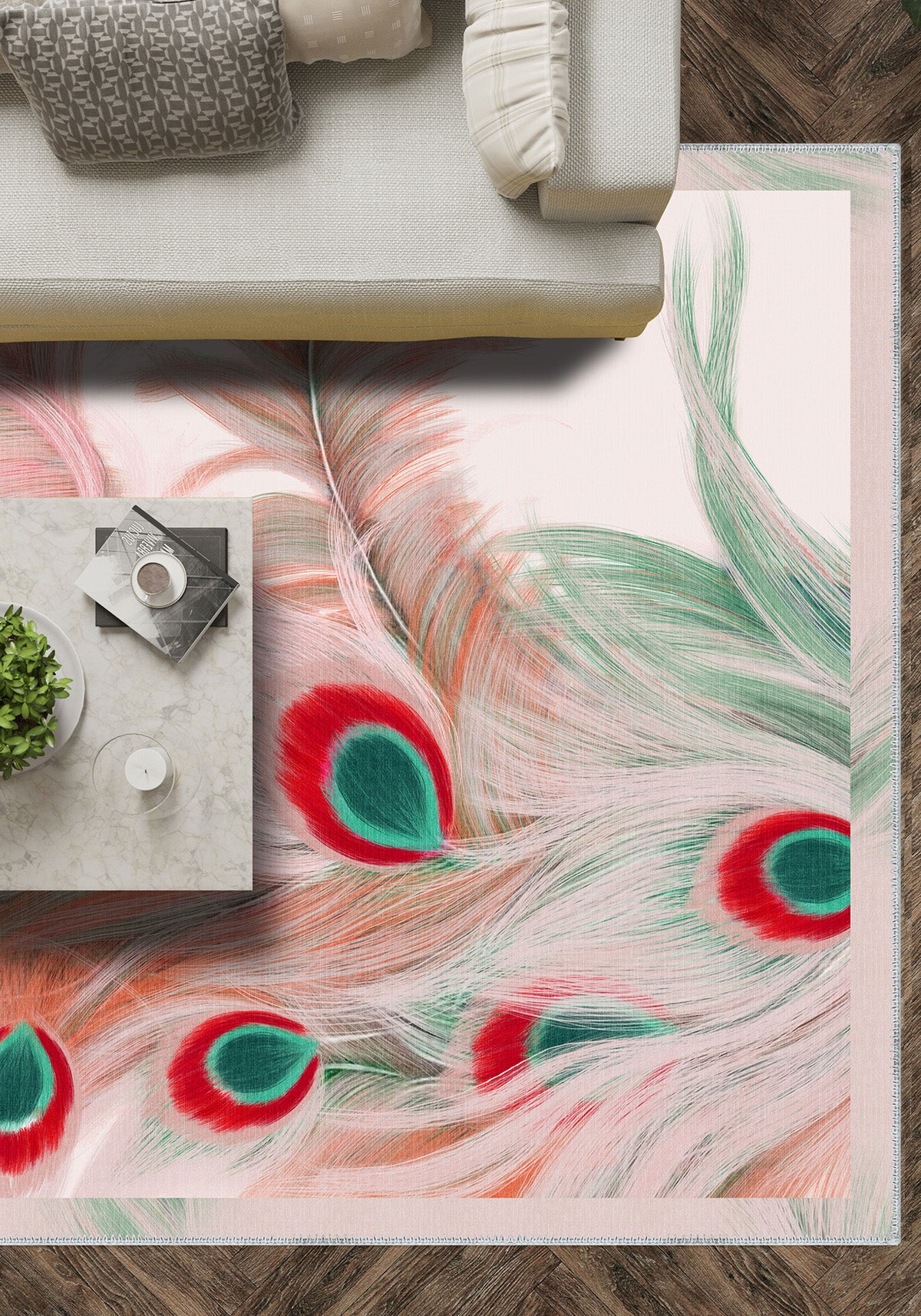 Rydian Peacock Rug – Vibrant Feather-Inspired Beauty