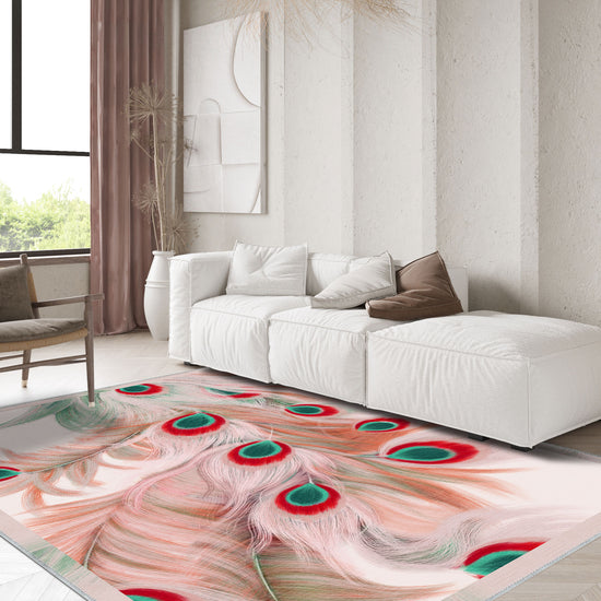 This unique Rydian Peacock Rug is more than just a floor covering – it’s an artistic centerpiece. Its vibrant peacock feather design effortlessly blends soft colors with striking accents, making it the perfect addition to spaces that need a pop of personality and flair. The washable material ensures practicality, making it a stylish yet functional choice for homes with high foot traffic. Bring a piece of nature-inspired art into your home with this eye-catching rug.