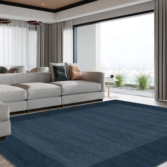 Enhance your space with the Savannah Blue Washable Rug, a refined blend of simplicity and sophistication. Featuring a rich blue hue with a subtle tonal border, this rug exudes effortless elegance, making it a timeless addition to any modern or classic interior.