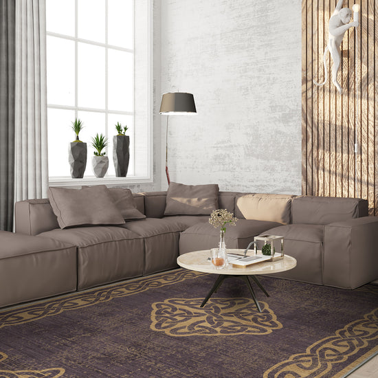 Step into a realm where history whispers beneath your feet. The Sorin Celtic Lavender Rug evokes the magic of ancient traditions with its intricate knotwork design—woven in warm golden ochre over a dusky, regal lavender base. This is more than a rug; it’s a portal to another time, a centrepiece of story and soul.