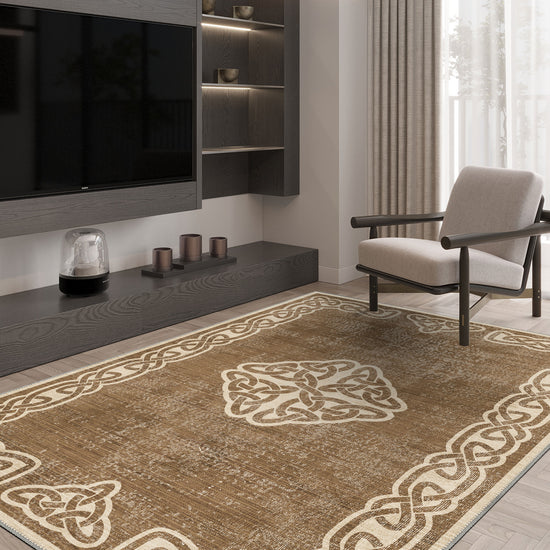 This is the rug you notice—not because it's loud, but because it feels deeply considered. The Celtic knots add meaning, the beige warms the room, and the texture draws you in. It’s the kind of piece that gets compliments, not just for its looks, but for the way it makes a room feel rooted and alive.