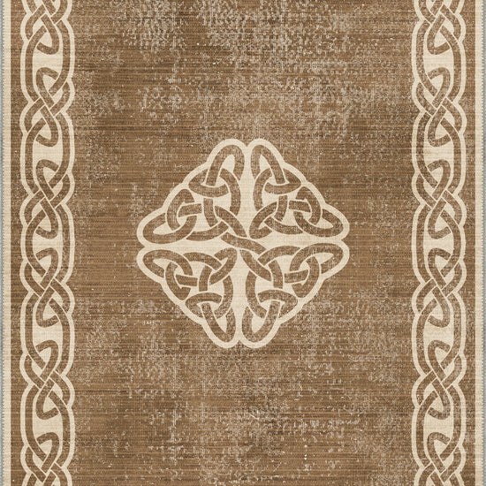 - Intricate Celtic knot pattern in creamy tones over a rustic warm beige base