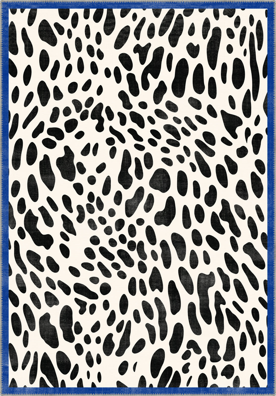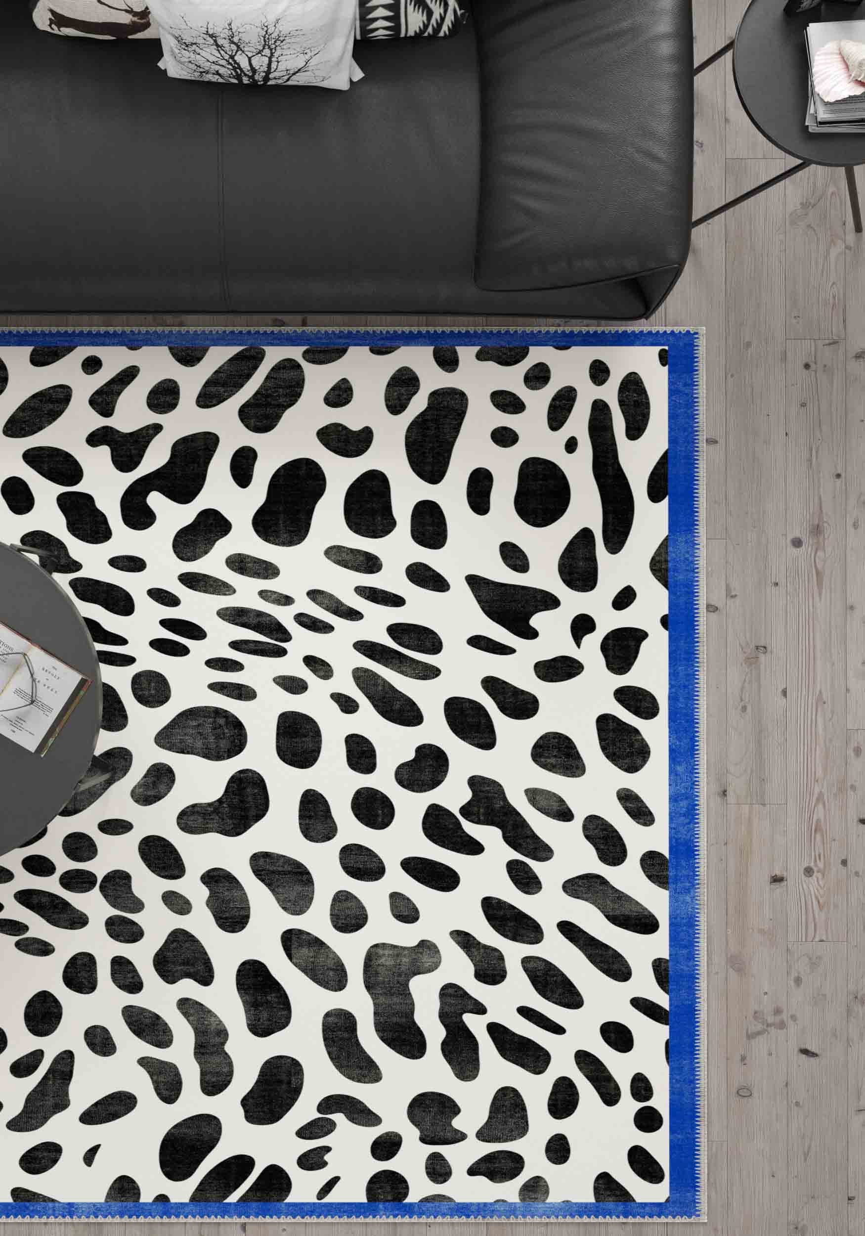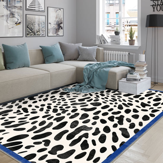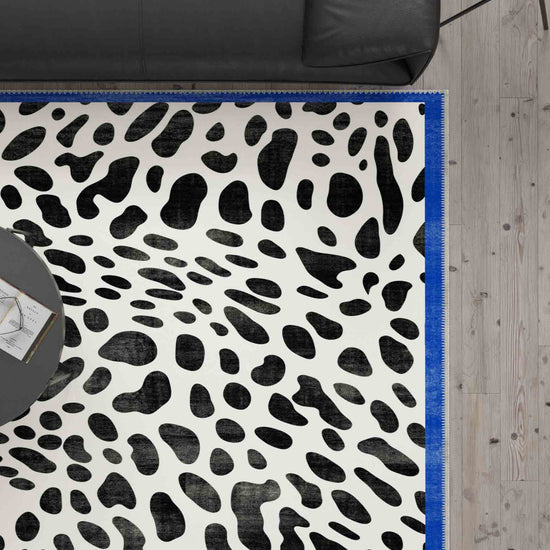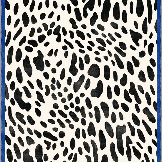 Dalmatian Black and White Animal Print Rug with Vibrant Blue Border – Bold, Fun, and Playful