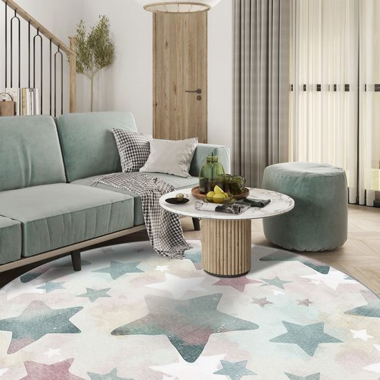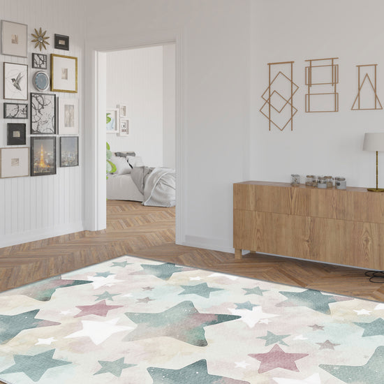 - Nurseries: The soft tones and playful stars make this rug a beautiful and functional addition to nurseries, creating a peaceful and cozy environment for your baby.