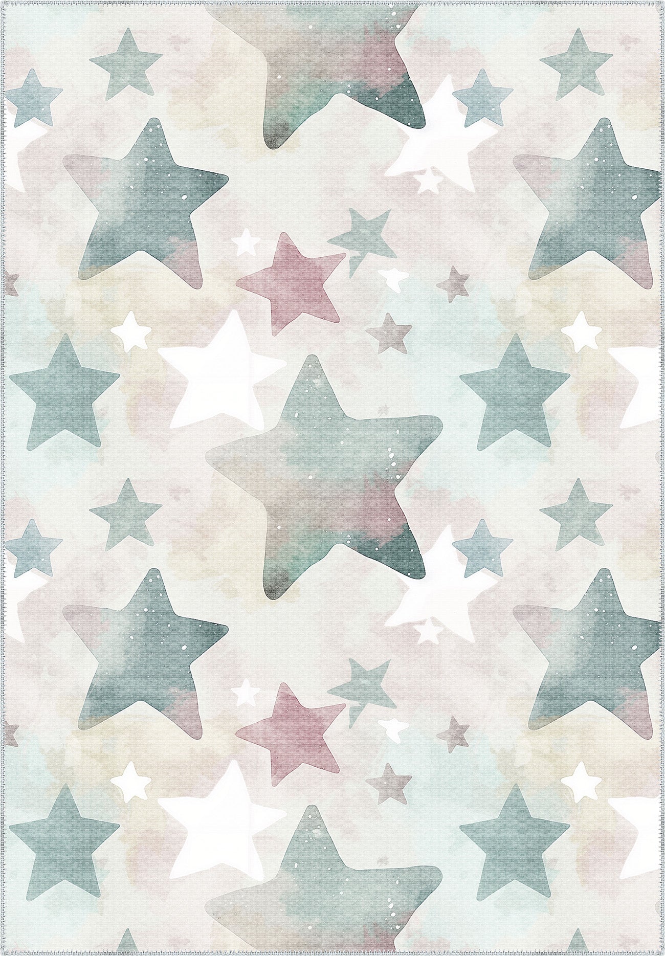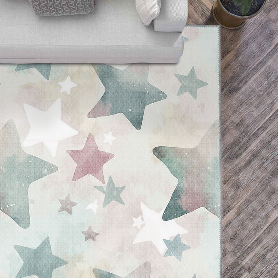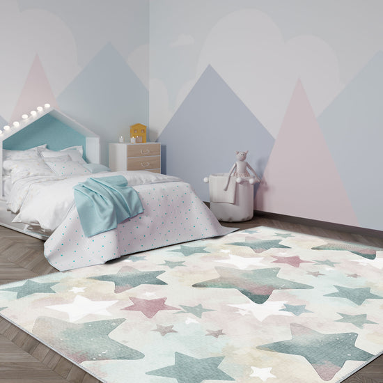 - Whimsical Starry Design: The rug features scattered stars in a delightful mix of pastel tones, adding a dreamy and playful vibe to your child's space.