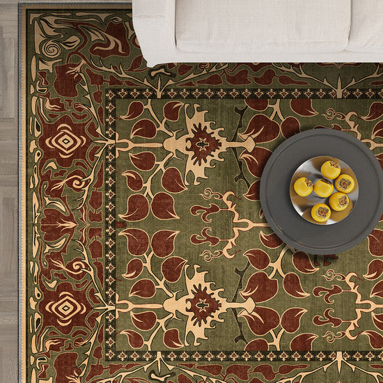 Sylvara Vintage Green Rug – Botanical Heritage with Timeless Warmth
