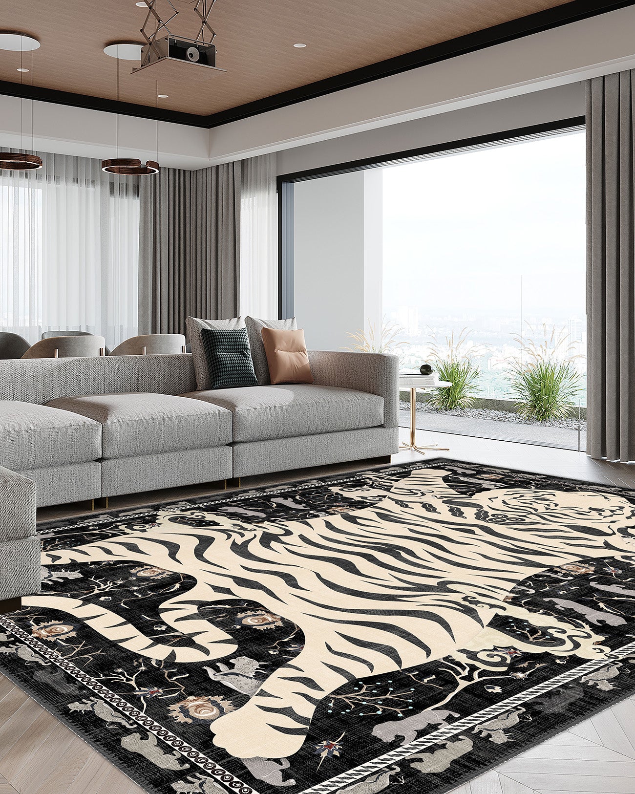 Tashi Black and White Tiger Pelt Rug โ Mystical Power Meets Vintage Prestige