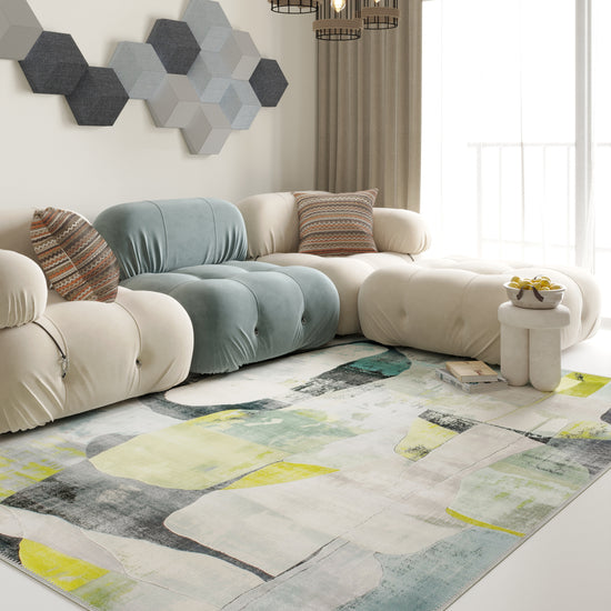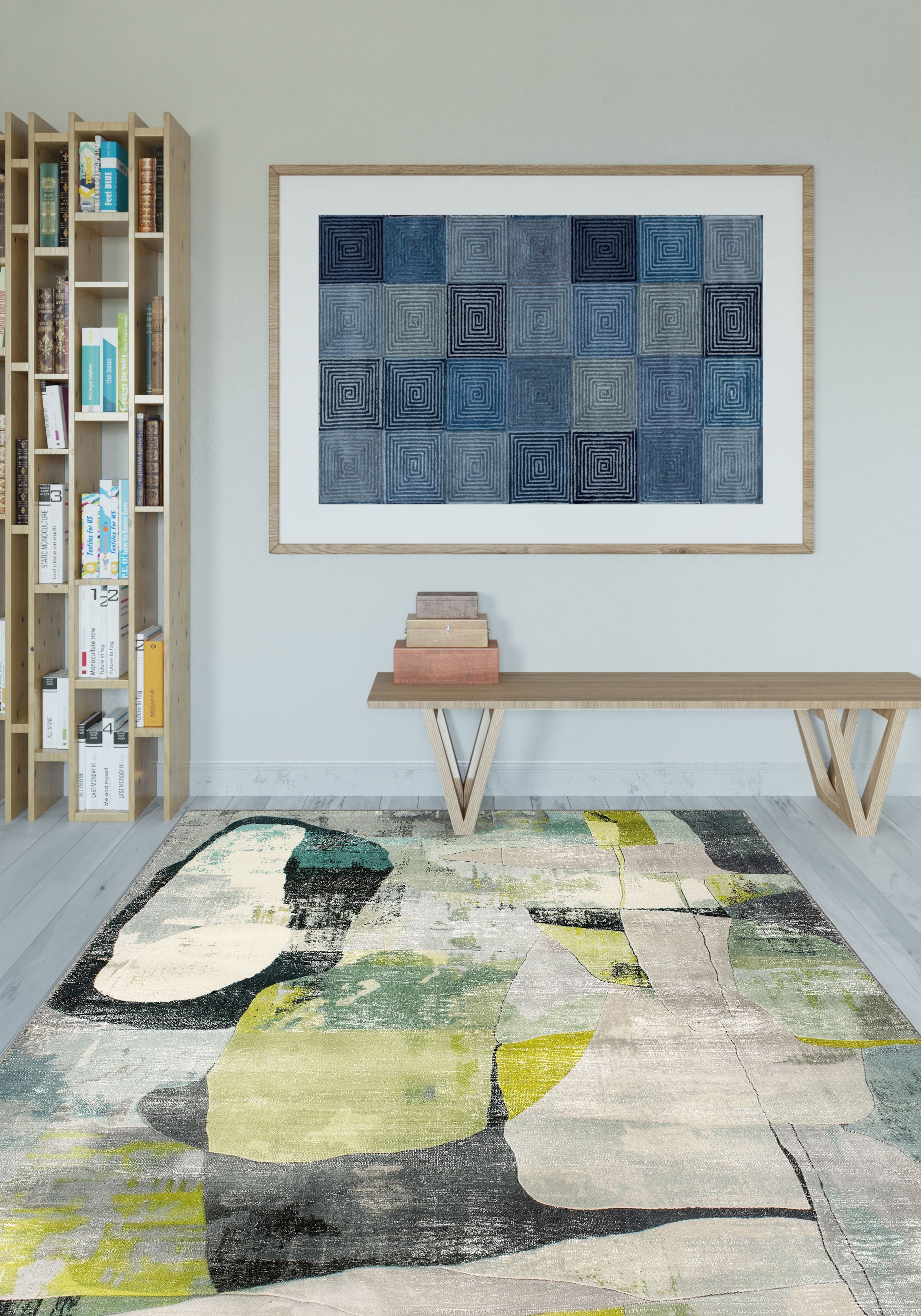 The Thaddeus Green Abstract Rug brings a vibrant energy to any room, blending organic shapes and modern colour palettes for a design that feels both refreshing and dynamic. With its splashes of green, grey, and subtle earthy tones, this abstract masterpiece is perfect for those seeking an artistic statement in their home décor.