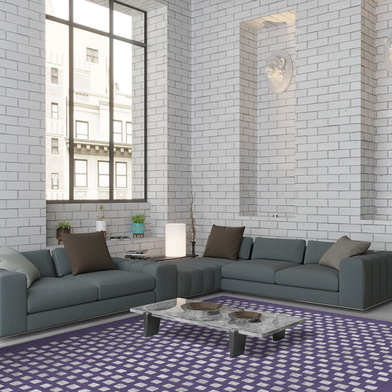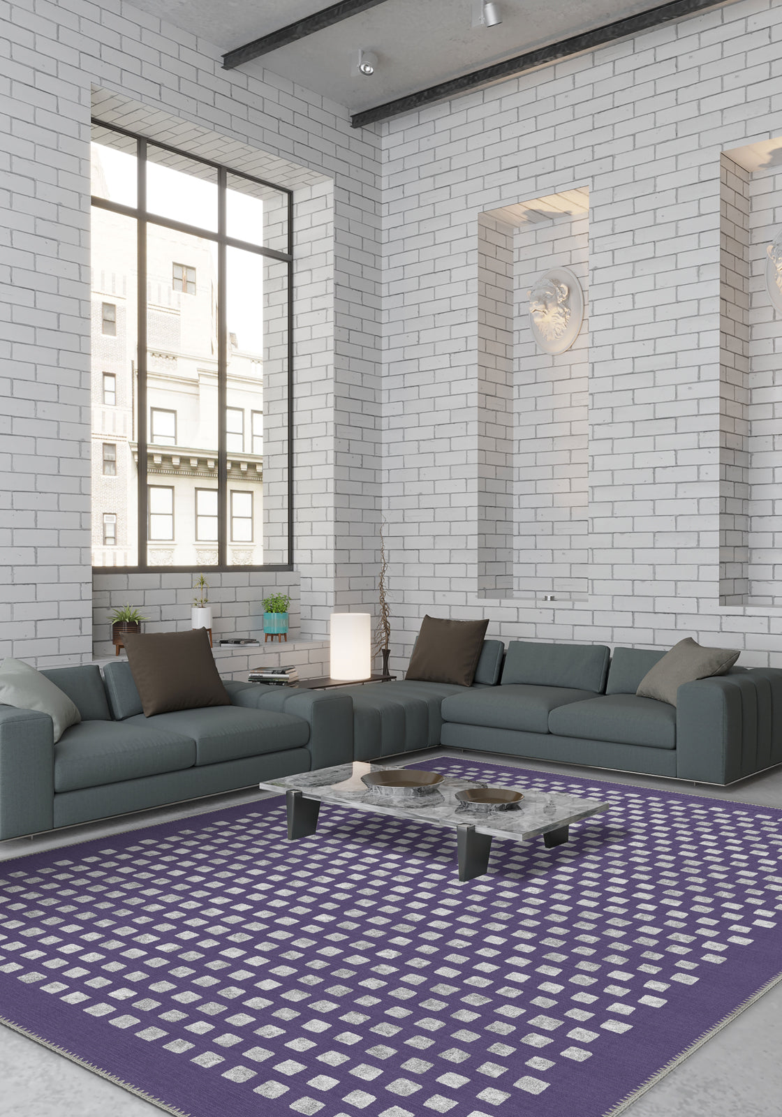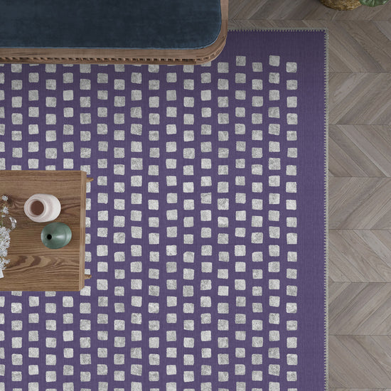 The Thalia Geometric Purple Rug brings structure and spirit into perfect harmony. Set against a rich plum-purple backdrop, hand-drawn squares in soft silver create a striking grid that feels both graphic and playful. It’s a statement piece for those who love colour but still crave order. Ideal for injecting energy into calm, curated interiors.