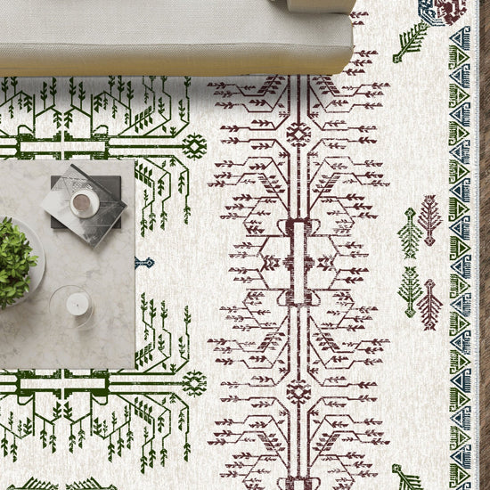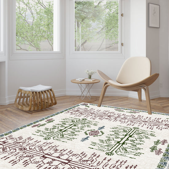 - Bohemian & Eclectic: The symbolic motifs and earthy colors make this rug a standout piece in bohemian or eclectic interior designs.