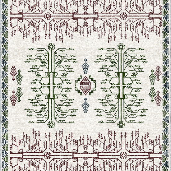- Tree of Life Motif: Central to the rug's design is the Tree of Life, symbolizing life’s cycle, growth, and renewal, with branches stretching upwards to signify the continuation of life.