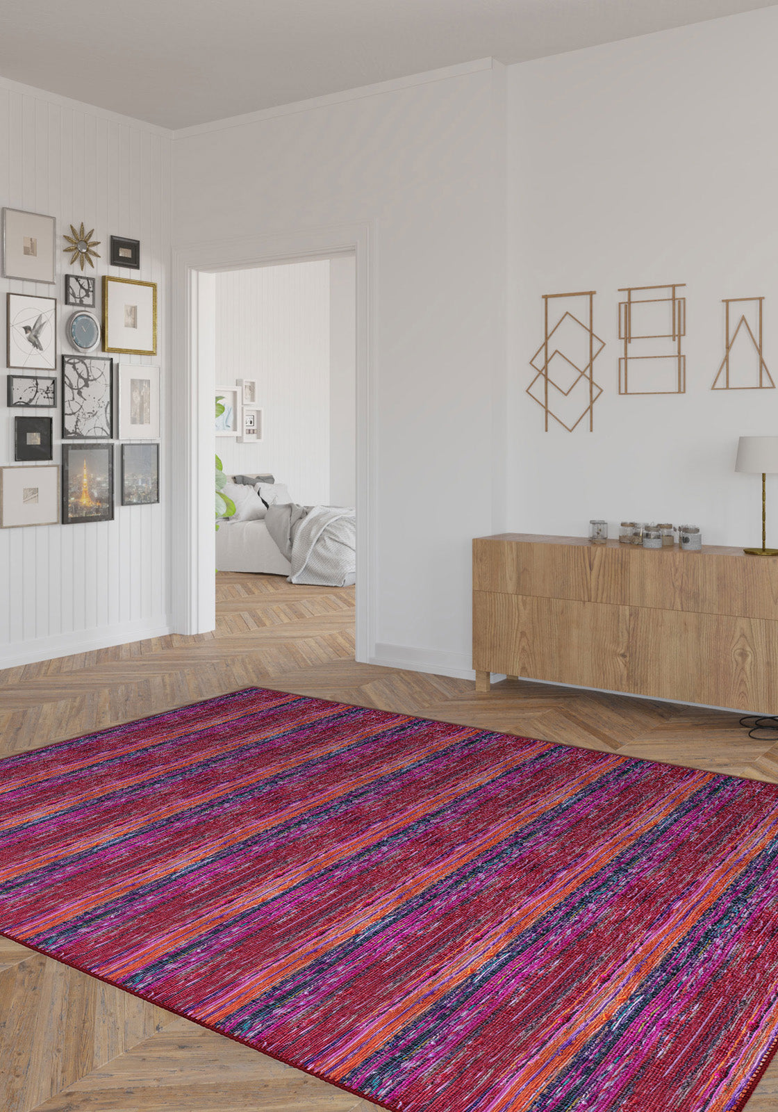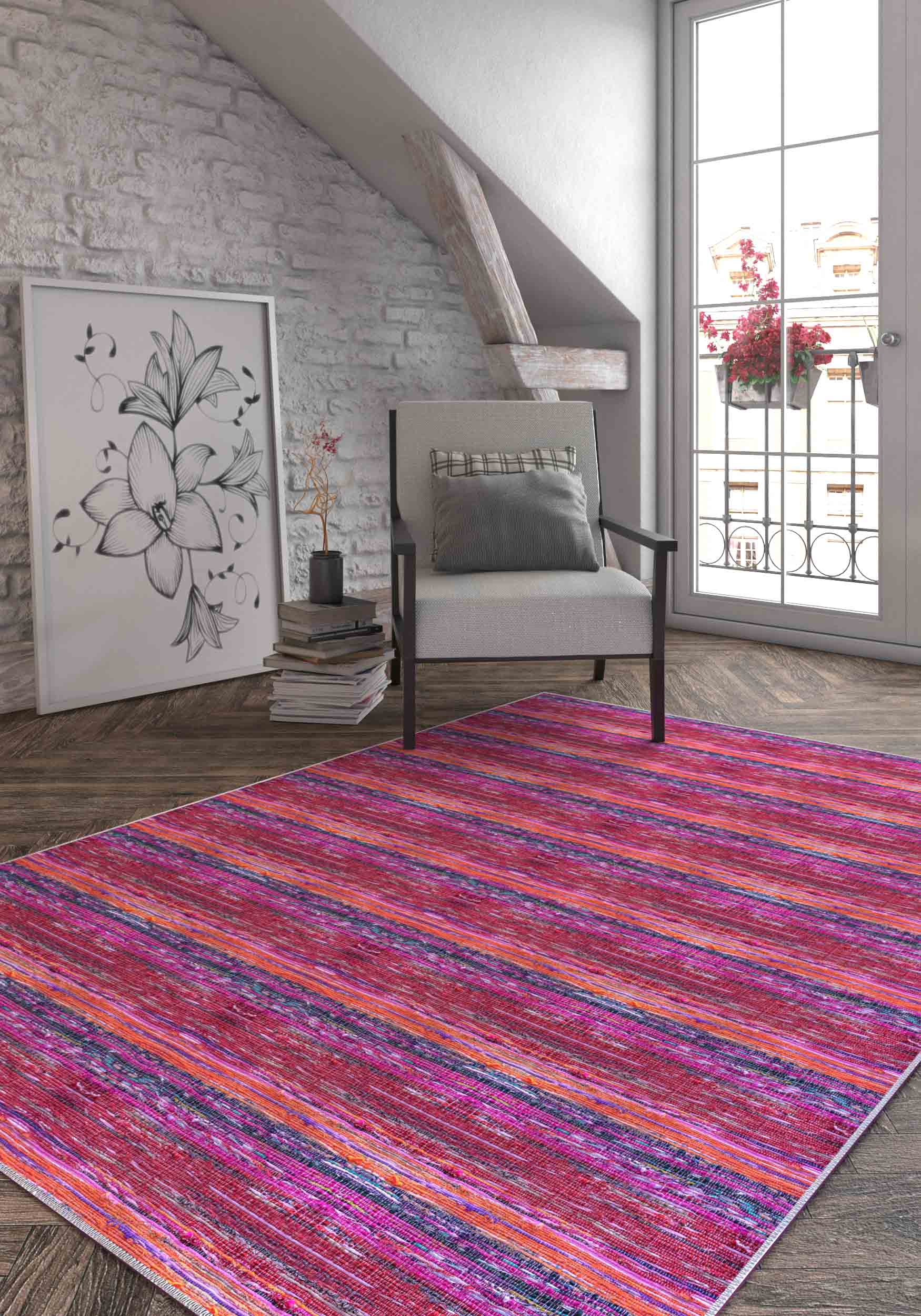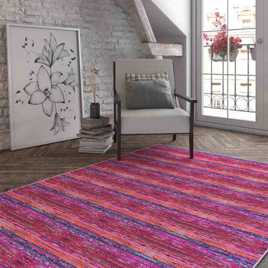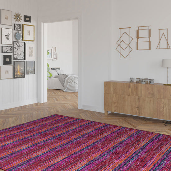 - Horizontal Striped Pattern: The subtle striped design adds depth and structure to your space, balancing the rug's vibrant colours.