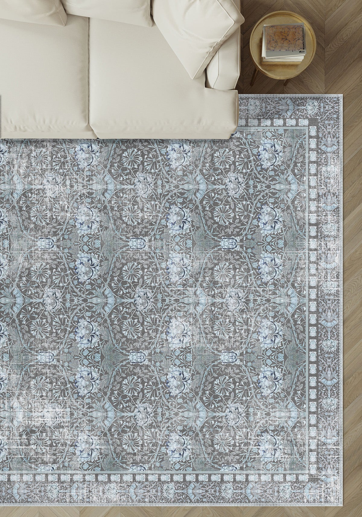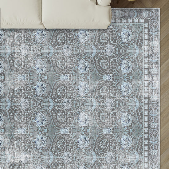 Zachary Blue Grey Distressed Rug – Timeless Art Nouveau Elegance