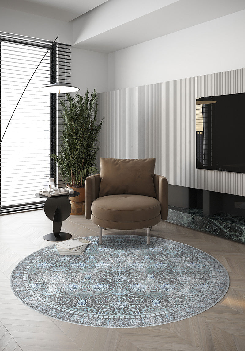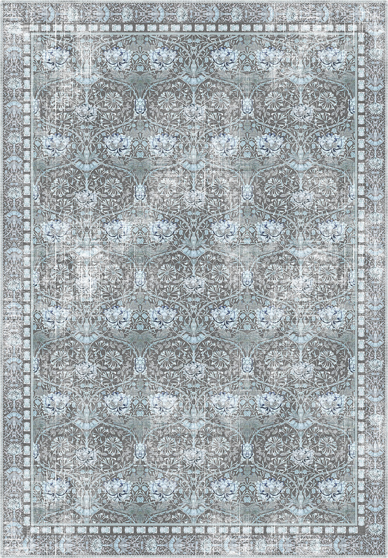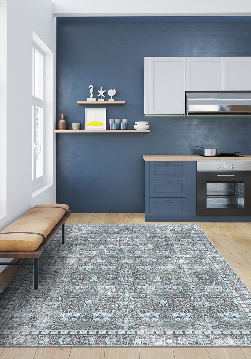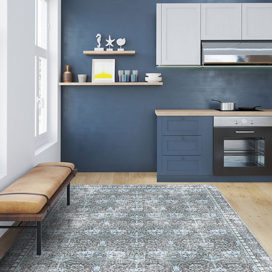 Zachary Blue Grey Distressed Rug – Timeless Art Nouveau Elegance