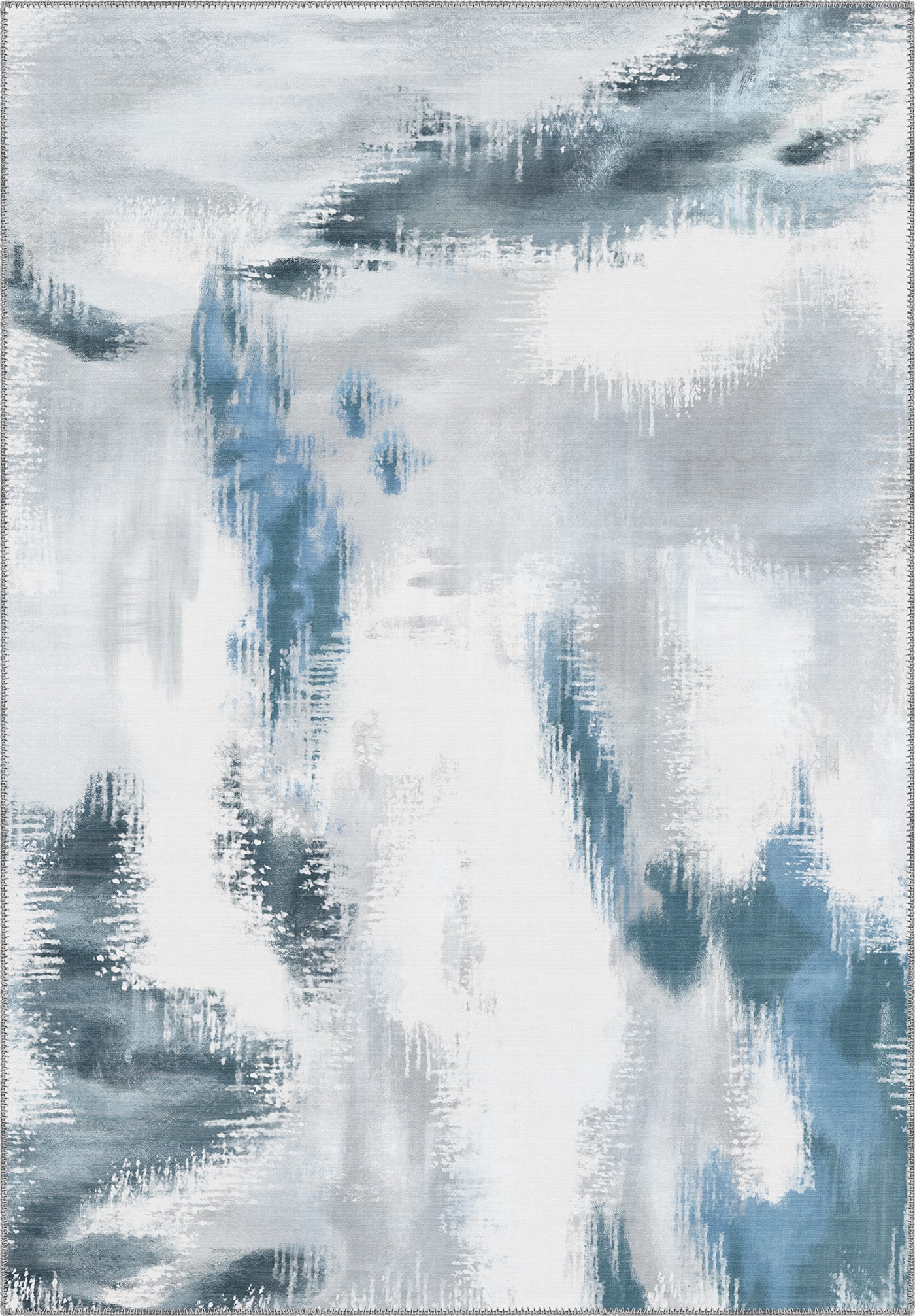 - Elegant ikat-style pattern in misty grey, blue, and white hues